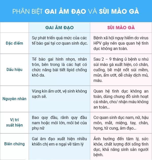 Trên thực tế, nhiều chị em hay có sự nhầm lẫn giữa gai âm đạo và bệnh sùi mào gà. Dưới đây bác sĩ Nhuận sẽ hướng dẫn chị em cách phân biệt 2 bệnh này: