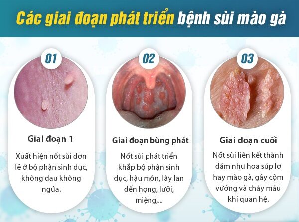 Nếu không được điều trị kịp thời, sùi mào gà sẽ tiếp tục phát triển và lan rộng ra. Nốt sùi sẽ dần tăng kích thước và có thể gộp lại với nhau hình thành các cụm sùi lớn hơn.