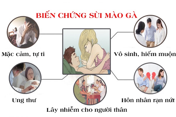 Sùi mào gà là bệnh lý rất nguy hiểm do có khả năng lây lan nhanh và có thể tiến triển thành các biến chứng nguy hiểm nếu không được điều trị kịp thời, ví dụ như: